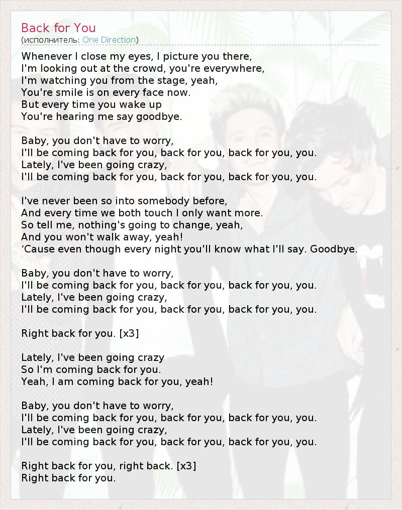 I'll be coming back for you, back for you, back for you, you.
