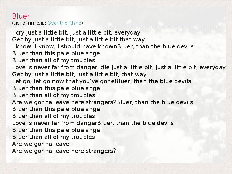 Are we gonna leave here strangers?Bluer, than the blue devils