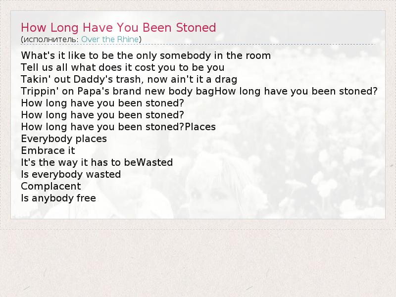 А как ты думаешь, о чем песня "How Long Have You Been Stoned" ?