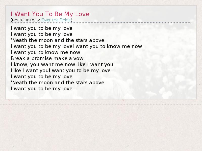 А как ты думаешь, о чем песня "I Want You To Be My Love" ?