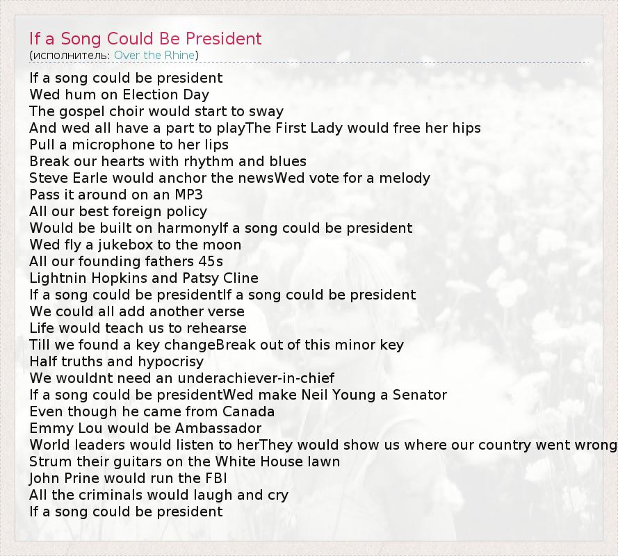 ГлавнаяИсполнителиOver the RhineIf a Song Could Be President
