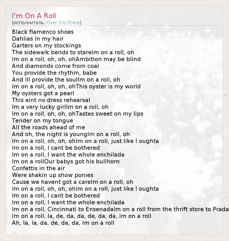 Im on a roll, la, de, da, da, de, da, da, Im on a roll