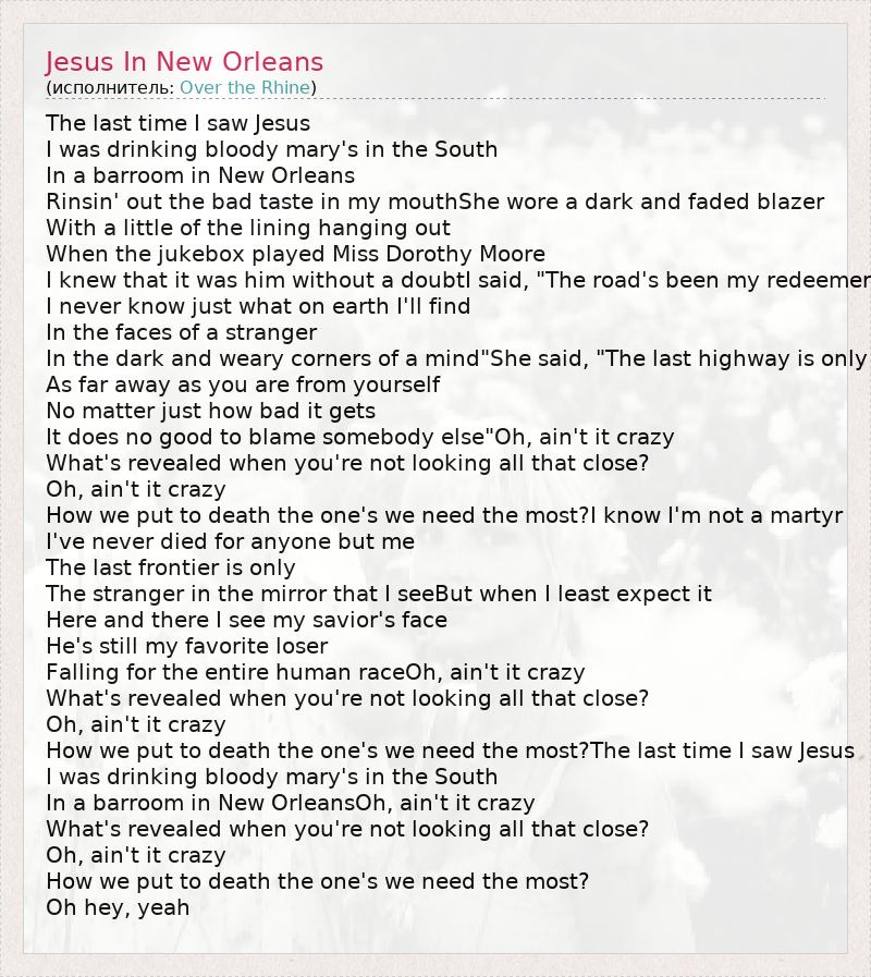 А как ты думаешь, о чем песня "Jesus In New Orleans" ?