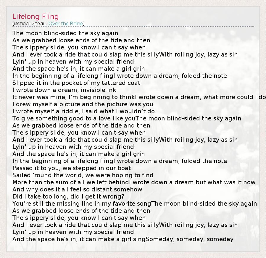 А как ты думаешь, о чем песня "Lifelong Fling" ?