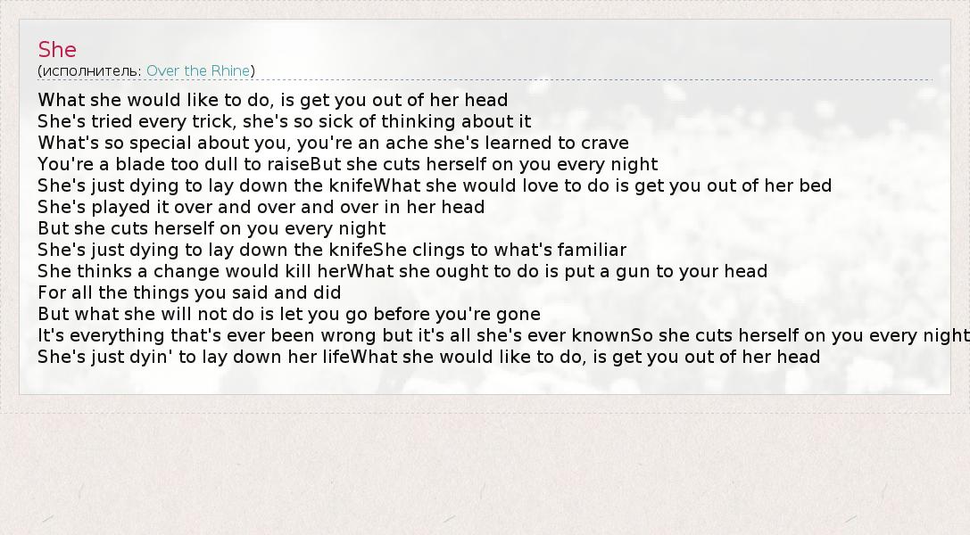 А как ты думаешь, о чем песня "She" ?