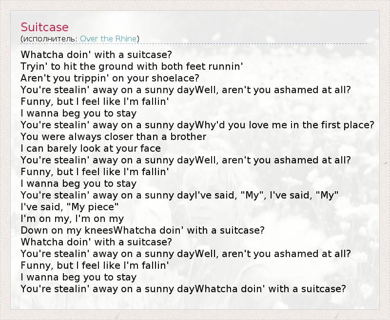А как ты думаешь, о чем песня "Suitcase" ?