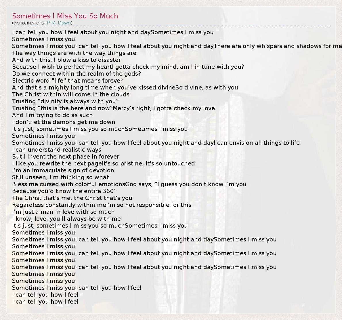 А как ты думаешь, о чем песня "Sometimes I Miss You So Much" ?