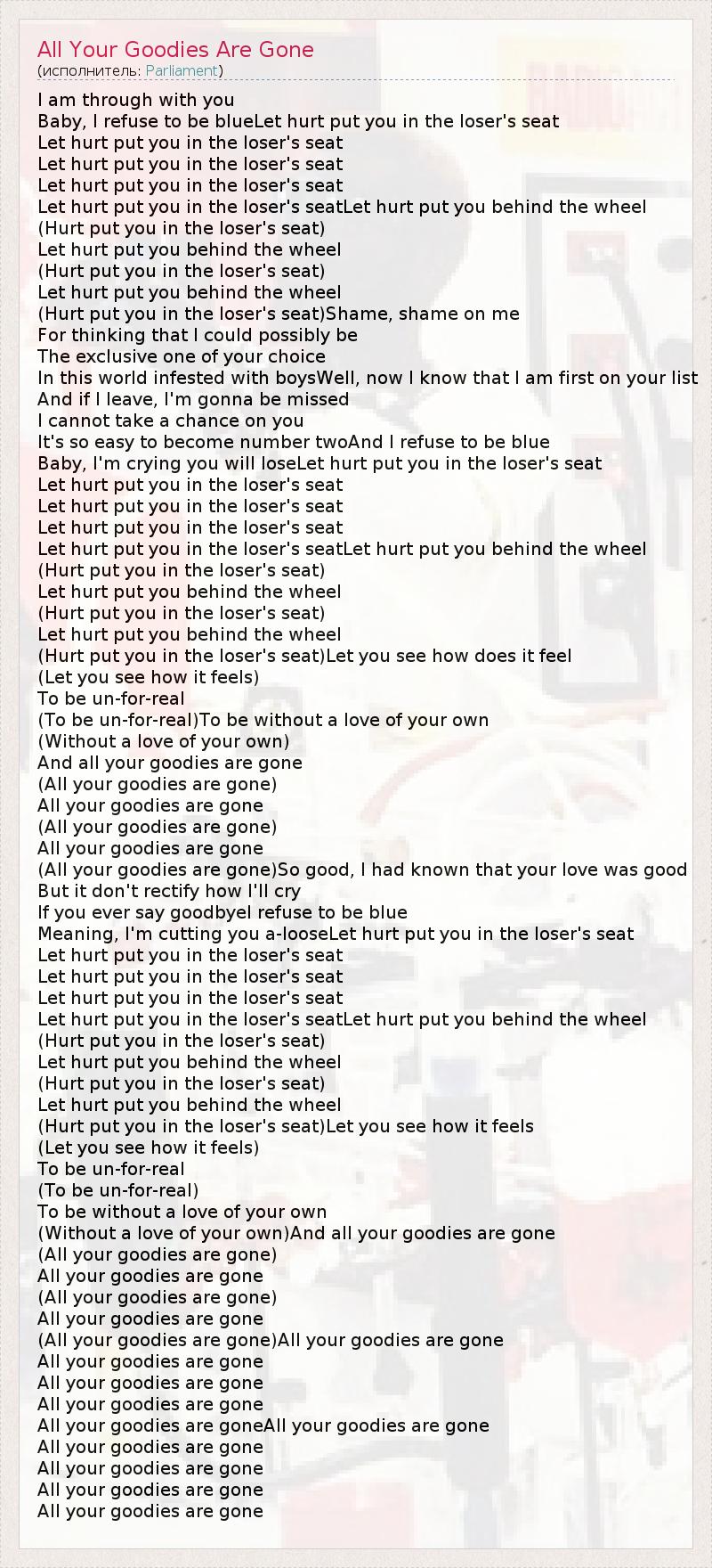 ГлавнаяИсполнителиParliamentAll Your Goodies Are Gone