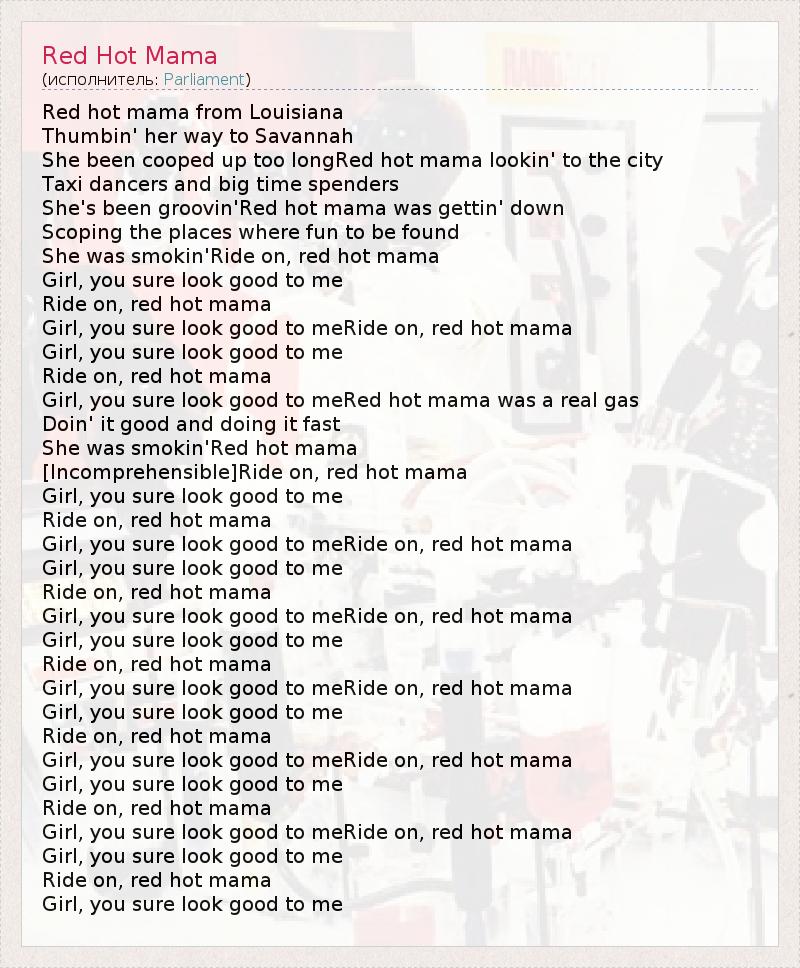 А как ты думаешь, о чем песня "Red Hot Mama" ?