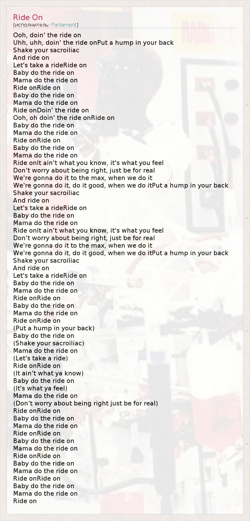 Ooh, oh doin' the ride onRide on