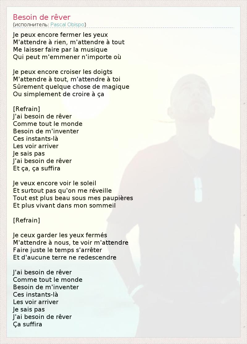 А как ты думаешь, о чем песня "Besoin de rêver" ?