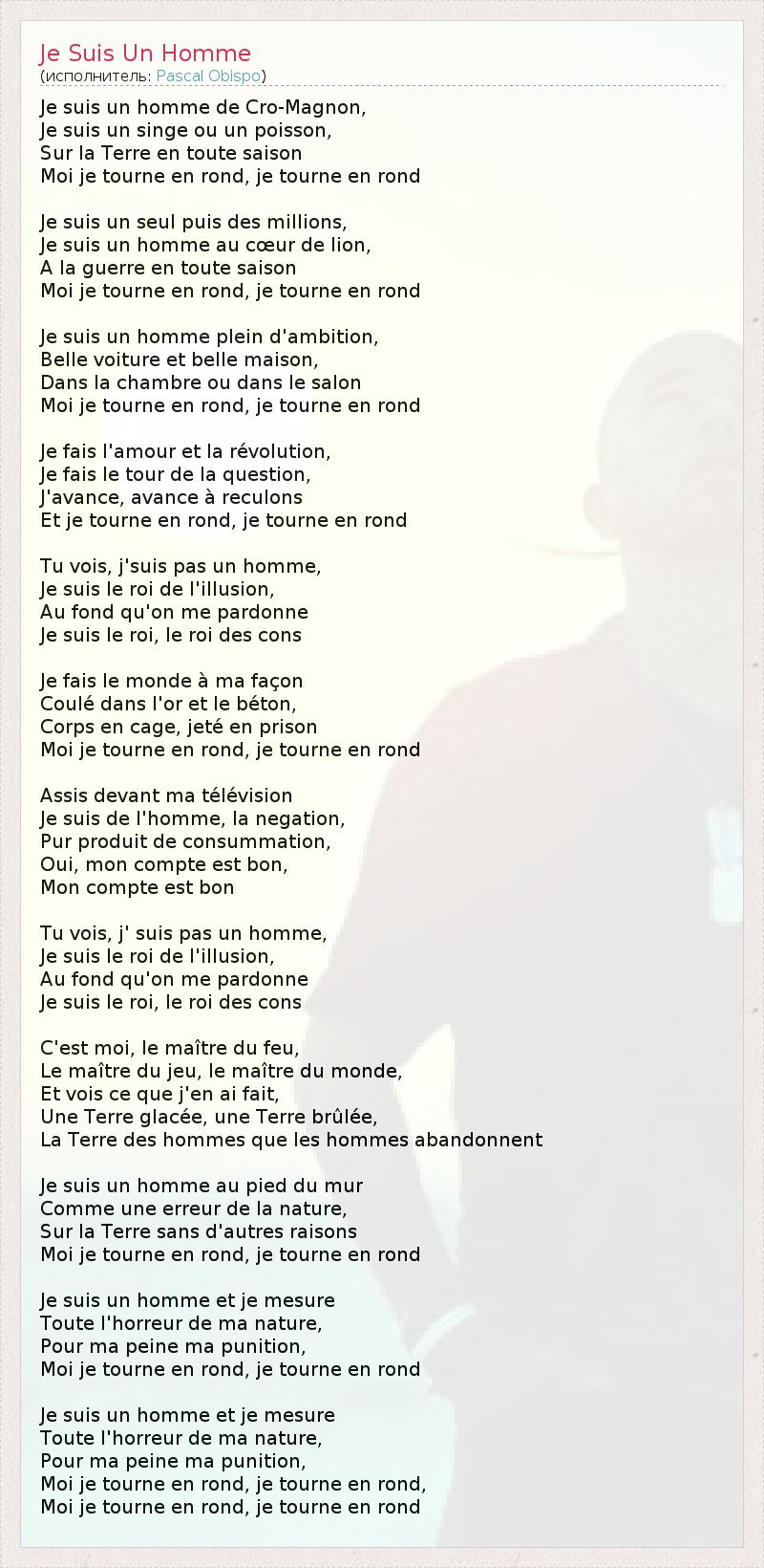 А как ты думаешь, о чем песня "Je Suis Un Homme" ?