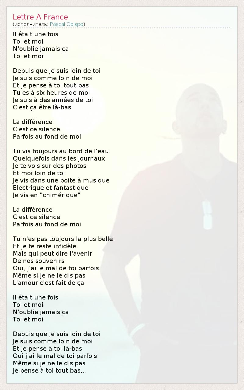 А как ты думаешь, о чем песня "Lettre A France" ?