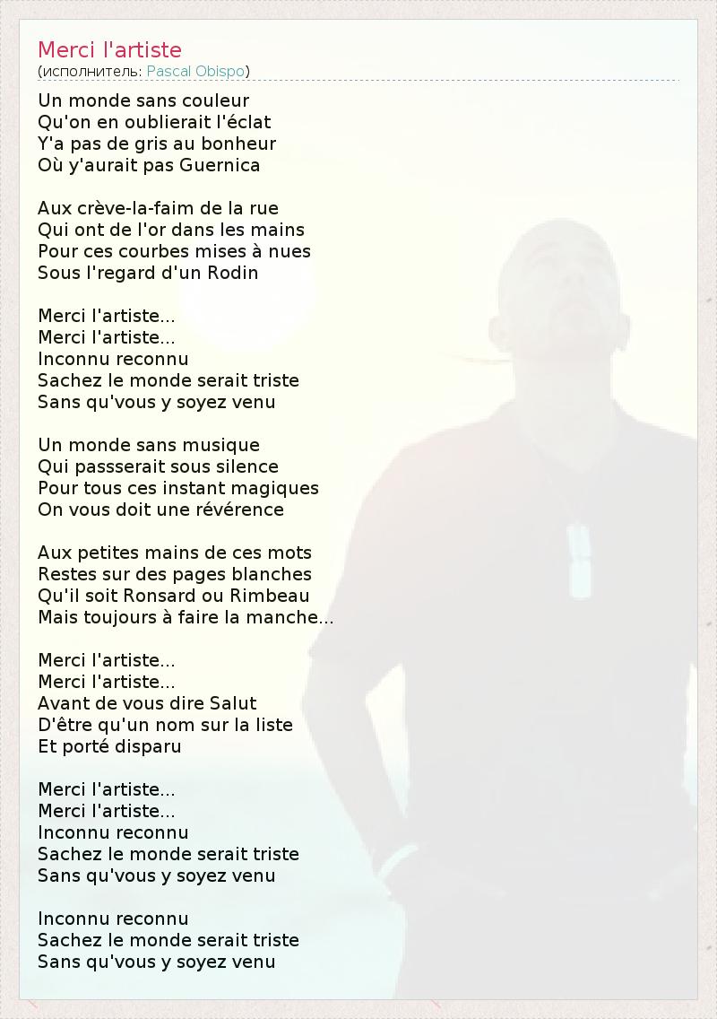 А как ты думаешь, о чем песня "Merci l'artiste" ?
