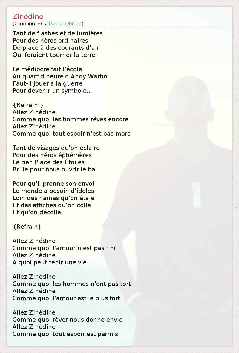 Это интересно:ИсторияПаскаль Обиспо родился 8го января 1965 года в Бержераке, на юго-западе Франции, в семье известного в тех краях футболиста (отец играл за бордосский «Жирондин») и долгое время сам мечтал стать профессиональным спортсменом – он обожал баскетбол. Но все изменилось, когда 13летний Паскаль переехал с матерью в столицу Бретани город Ренн, явивший миру таких звезд французской эстрады,... продолжение