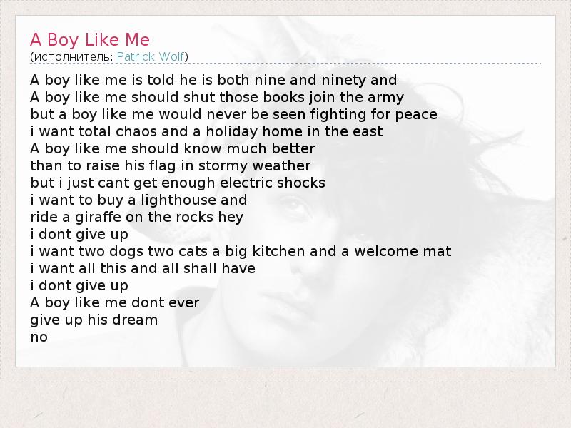 А как ты думаешь, о чем песня "A Boy Like Me" ?