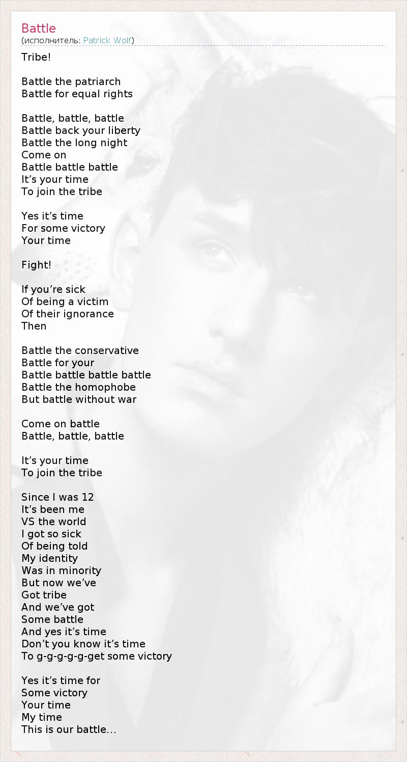 Это интересно:Патрик Вулф (англ. Patrick Wolf, 30 июня 1983, Лондон, Великобритания) — современный британский певец, музыкант и композитор. Настоящее имя Patrick Denis Apps. Играет на большом количестве музыкальных инструментов, в том числе таких как укулеле, фортепиано и альт. Пишет музыку, используя как сэмплы, так и классические музыкальные инструменты. Его стиль варьируется от романтичного фолка до техно-попа.Пи... продолжение