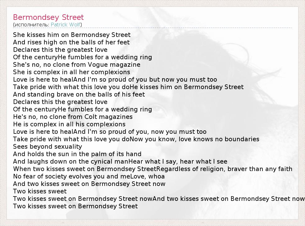Two kisses sweet on Bermondsey Street nowAnd two kisses sweet on Bermondsey Street now
