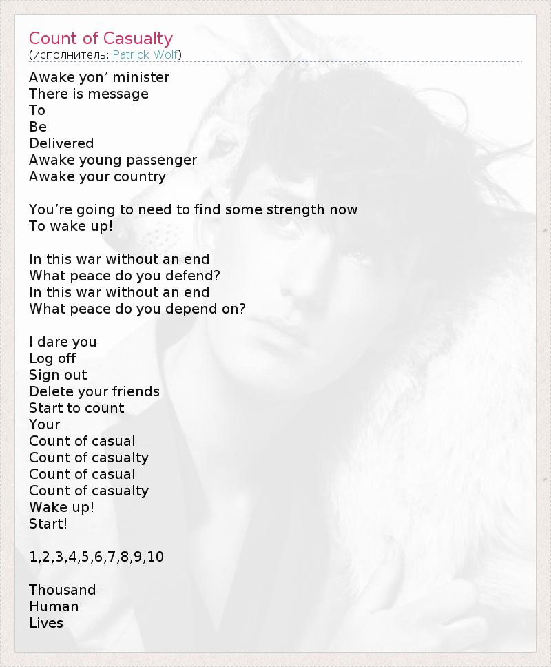 А как ты думаешь, о чем песня "Count of Casualty" ?