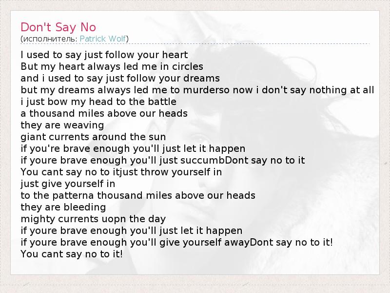 А как ты думаешь, о чем песня "Don't Say No" ?