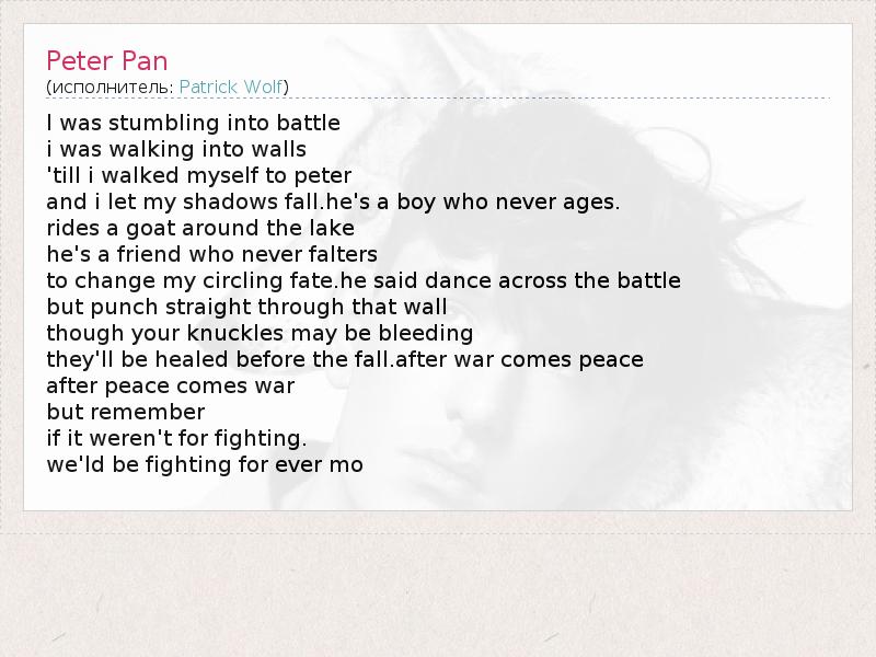 А как ты думаешь, о чем песня "Peter Pan" ?
