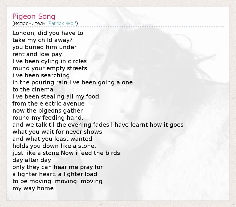 А как ты думаешь, о чем песня "Pigeon Song" ?