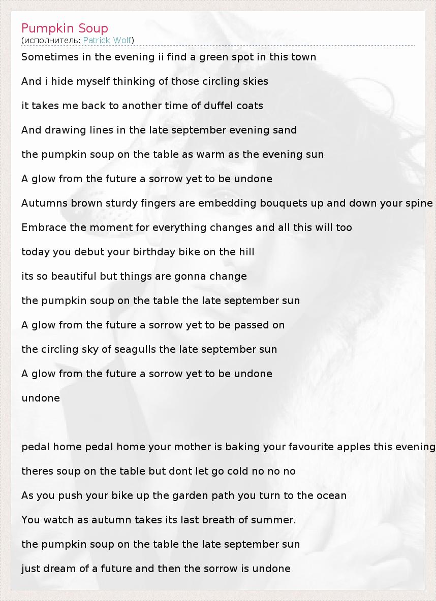 А как ты думаешь, о чем песня "Pumpkin Soup" ?