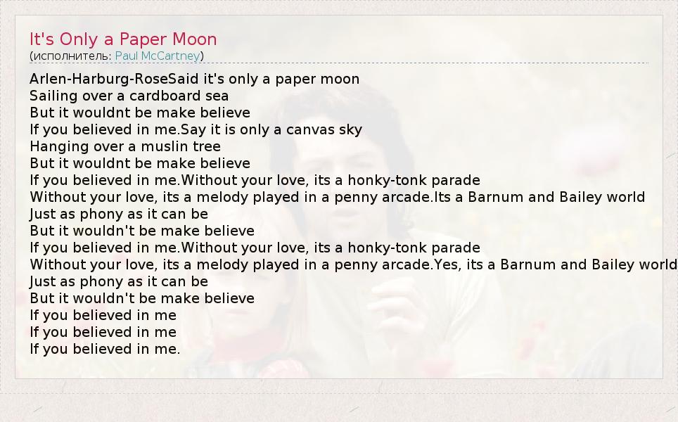 А как ты думаешь, о чем песня "It's Only a Paper Moon" ?