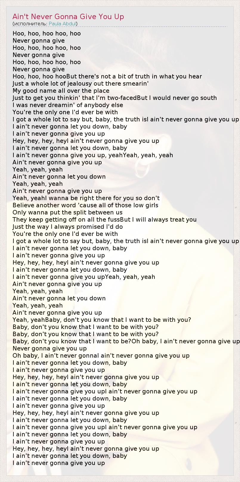 ГлавнаяИсполнителиPaula AbdulAin't Never Gonna Give You Up