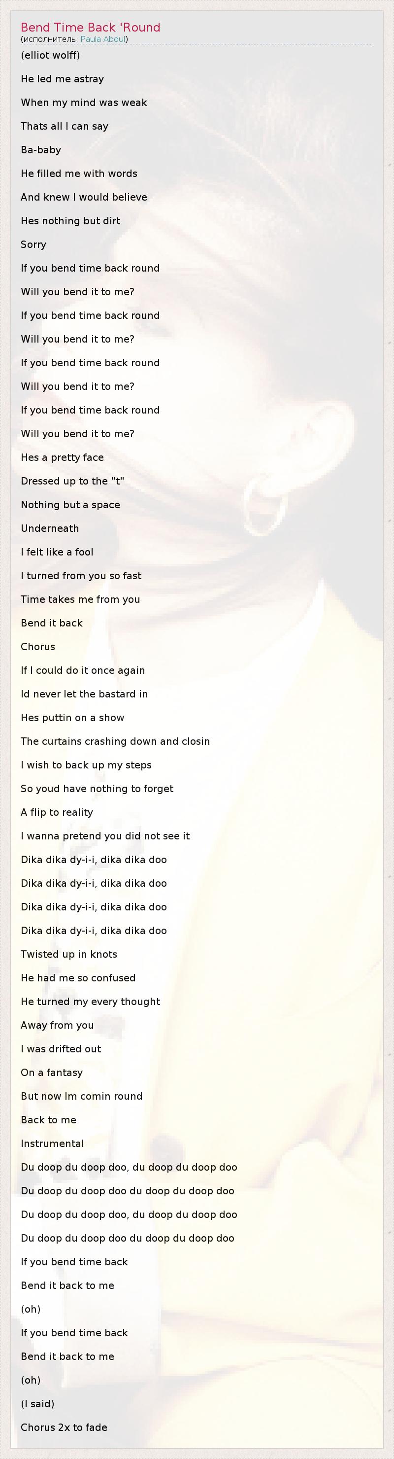 А как ты думаешь, о чем песня "Bend Time Back 'Round" ?
