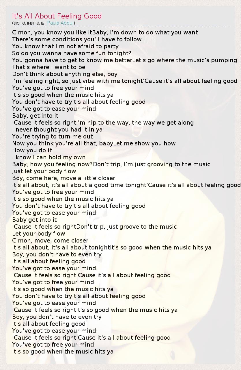 А как ты думаешь, о чем песня "It's All About Feeling Good" ?