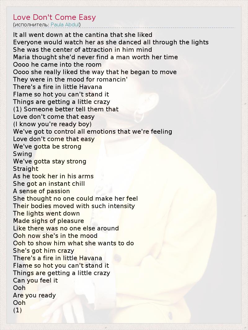 А как ты думаешь, о чем песня "Love Don't Come Easy" ?