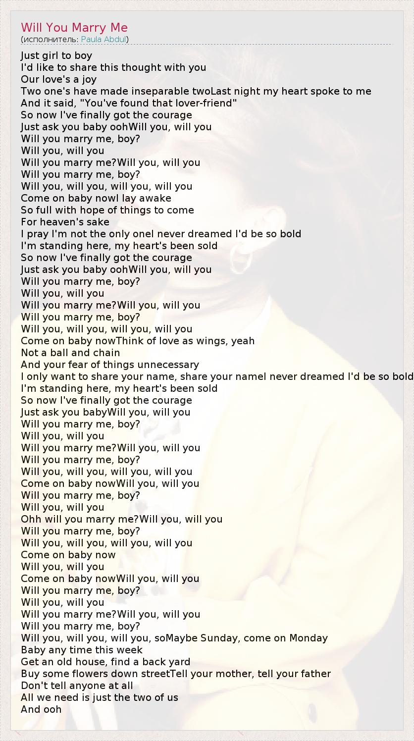 А как ты думаешь, о чем песня "Will You Marry Me" ?