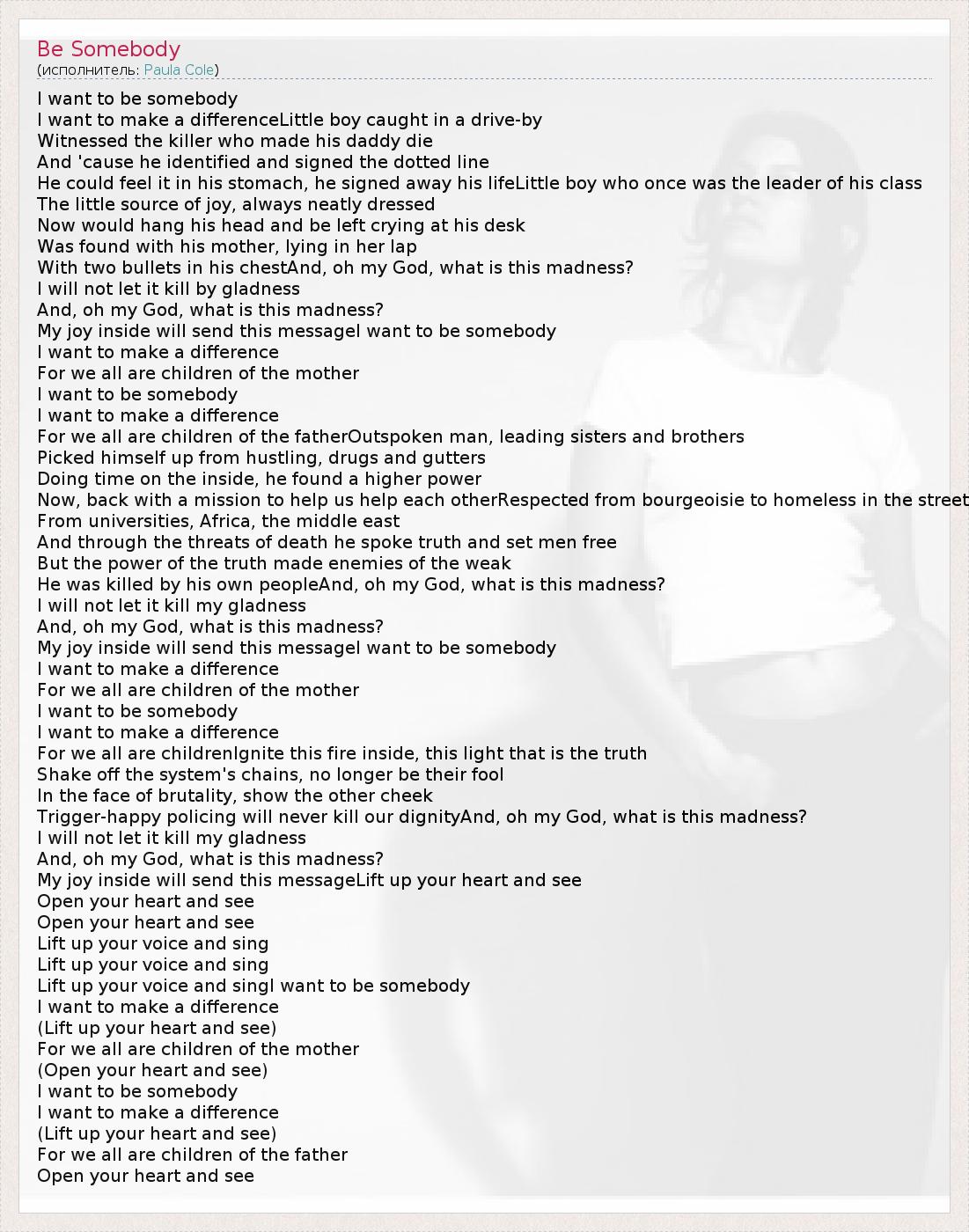 А как ты думаешь, о чем песня "Be Somebody" ?
