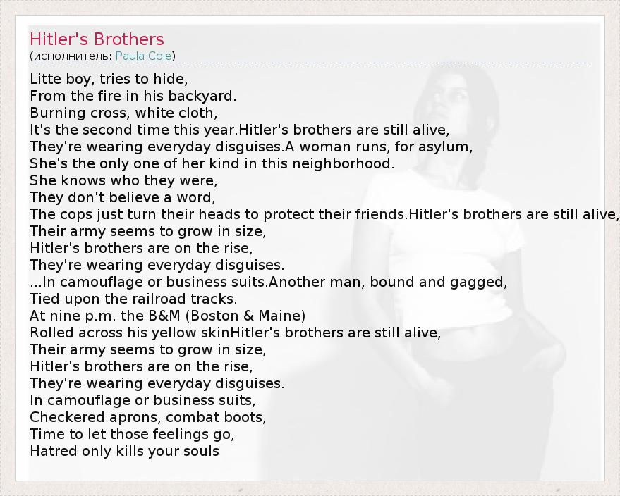 А как ты думаешь, о чем песня "Hitler's Brothers" ?