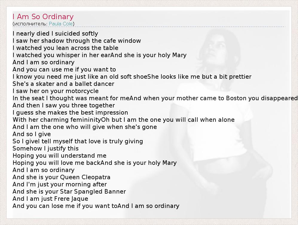 А как ты думаешь, о чем песня "I Am So Ordinary" ?