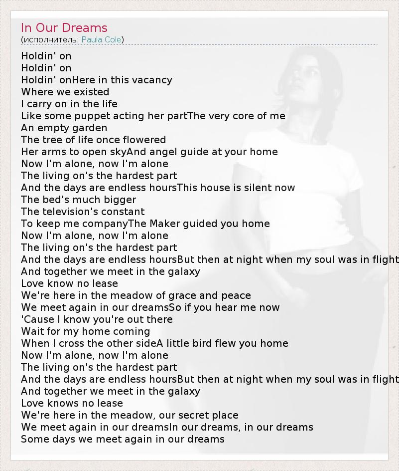 А как ты думаешь, о чем песня "In Our Dreams" ?