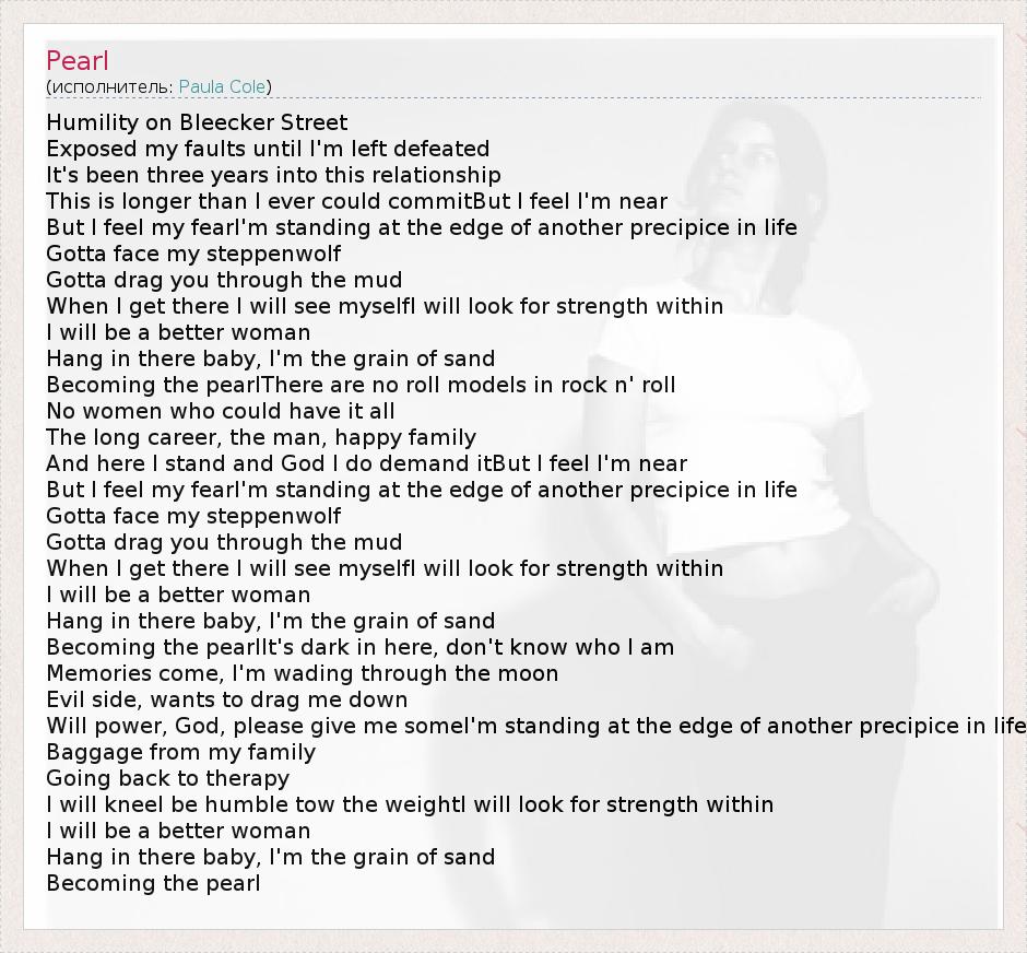 Это интересно:Паула Коул – удивительное явление в музыке поздних 90-х. Пола выросла в семье художницы и музыканта-любителя. Она родилась 5 апреля 1968 года в городе Рокпорт штата Массачусетс (США). В ее доме ежемгновенно звучала музыка, хотя около отродясь не играло радио или магнитофон. Музыкальным фоном были импровизации на разных инструментах в самых разных ситуациях, будь то посиделки на кухне или... продолжение