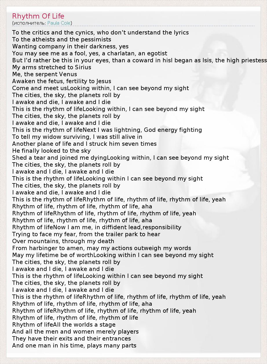 Rhythm of lifeRhythm of life, rhythm of life, rhythm of life, yeah