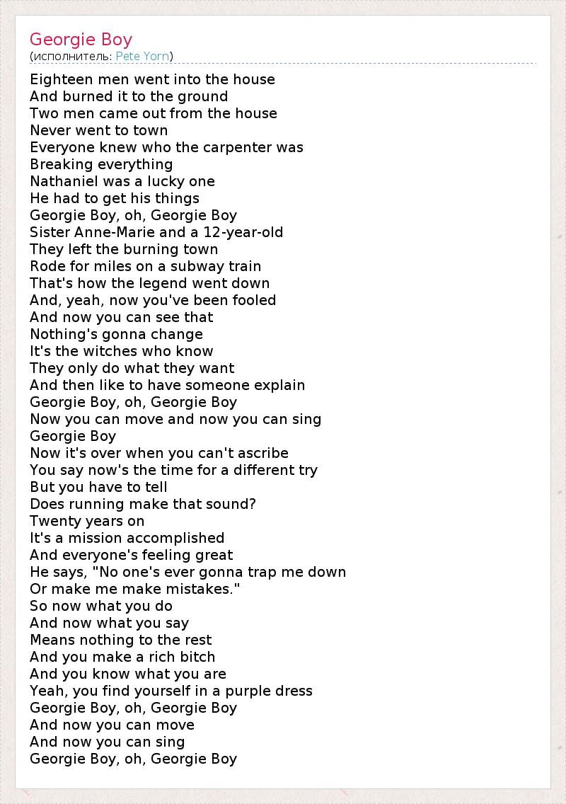А как ты думаешь, о чем песня "Georgie Boy" ?