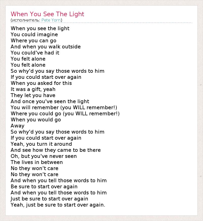 ГлавнаяИсполнителиPete YornWhen You See The Light