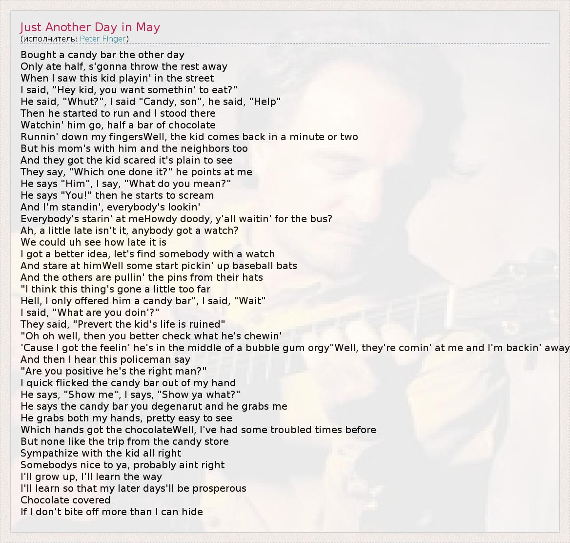А как ты думаешь, о чем песня "Just Another Day in May" ?