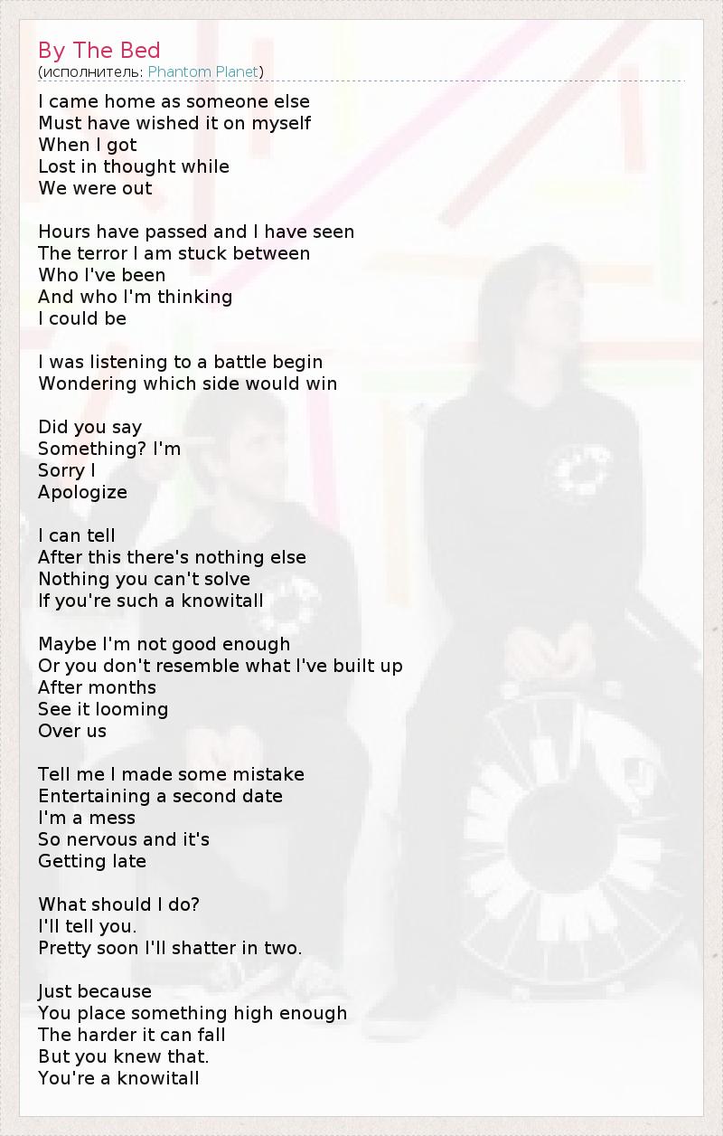 Это интересно:Phantom Planet – группа из Южной Калифорнии, относится к альтернативному року. Группа более широко известна по треку "California", который был создан для популярного молодёжного сериала "The O.C.".Группа существует с 1994 года по наши дни, дебютный альбом появился 1997 году (Phantom Planet is Missing), в 2002 году вышел второй их альбом (The Guest), который принес наибольший успех благодаря песне "California".... продолжение