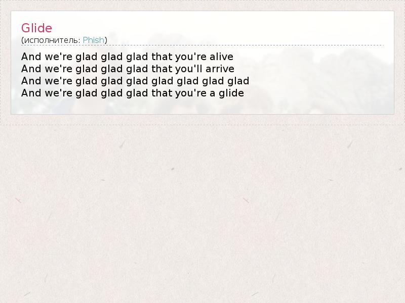 Это интересно:Phish — американская рок-группа, примечательная своими джем-сейшнами, импровизациями и постмодернистским смешением жанров. Phish была образована в 1983 году в университете Вермонта. Четыре ее участника выступали вместе 21 год, пока не распались в августе 2004 года. Их музыка содержала в себе элементы широкoго спектра жанров, и каждый их концерт был оригинальным в плане исполнения песен, порядка... продолжение