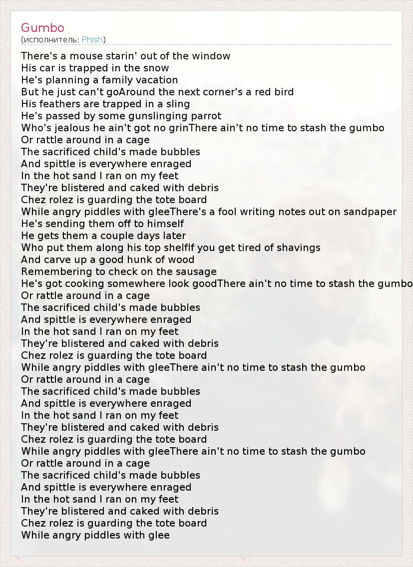 Who's jealous he ain't got no grinThere ain't no time to stash the gumbo