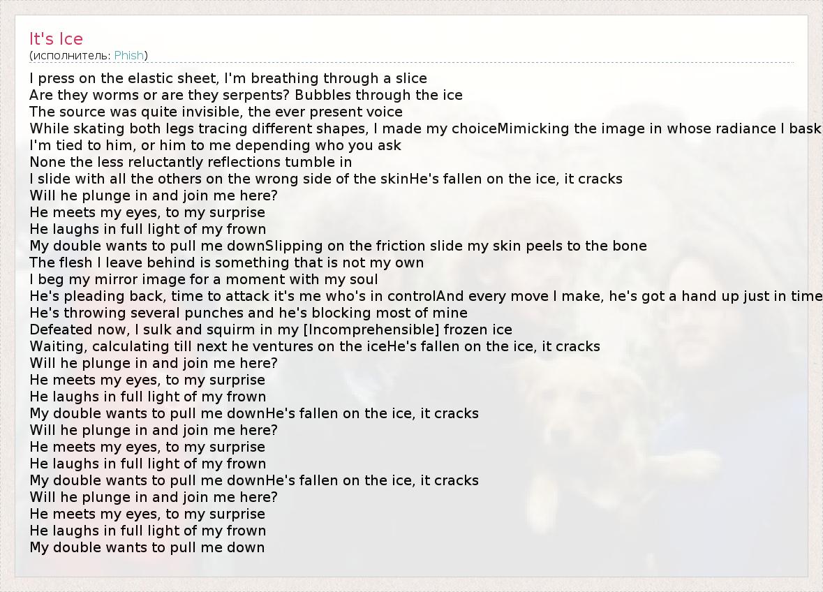 I slide with all the others on the wrong side of the skinHe's fallen on the ice, it cracks