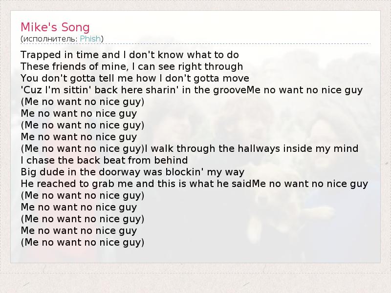 А как ты думаешь, о чем песня "Mike's Song" ?