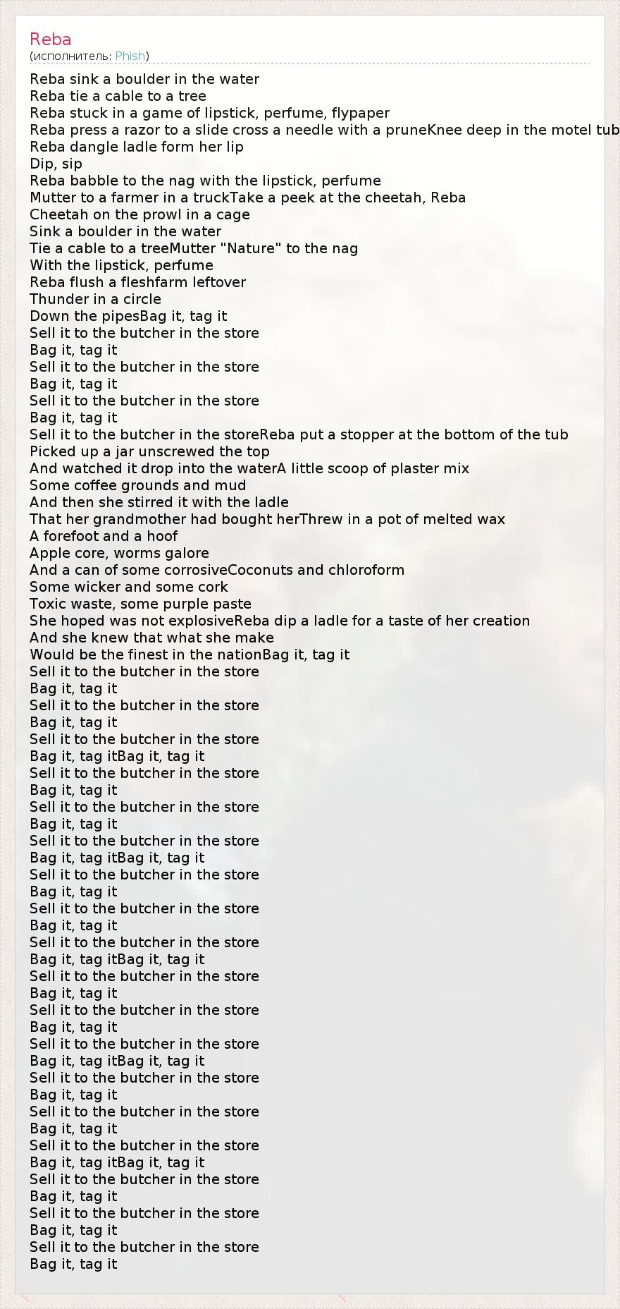 А как ты думаешь, о чем песня "Reba" ?