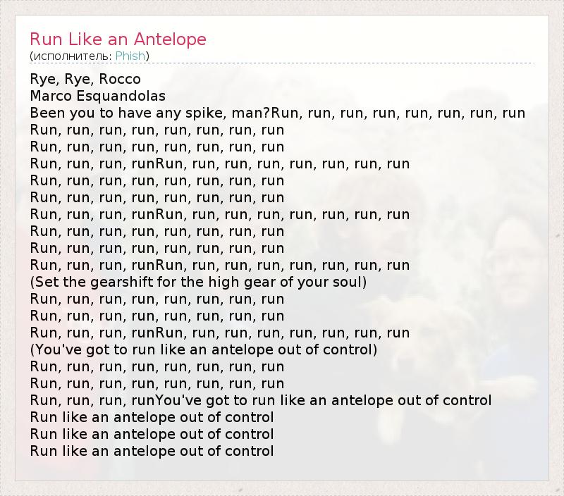 А как ты думаешь, о чем песня "Run Like an Antelope" ?