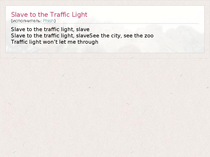 ГлавнаяИсполнителиPhishSlave to the Traffic Light